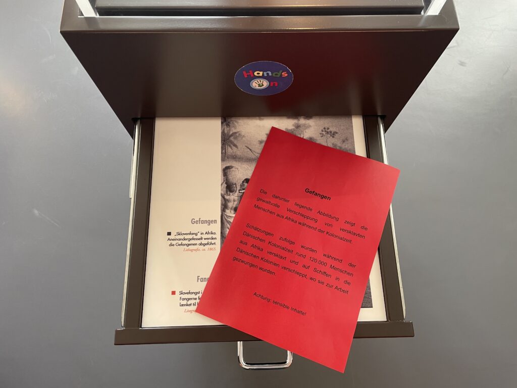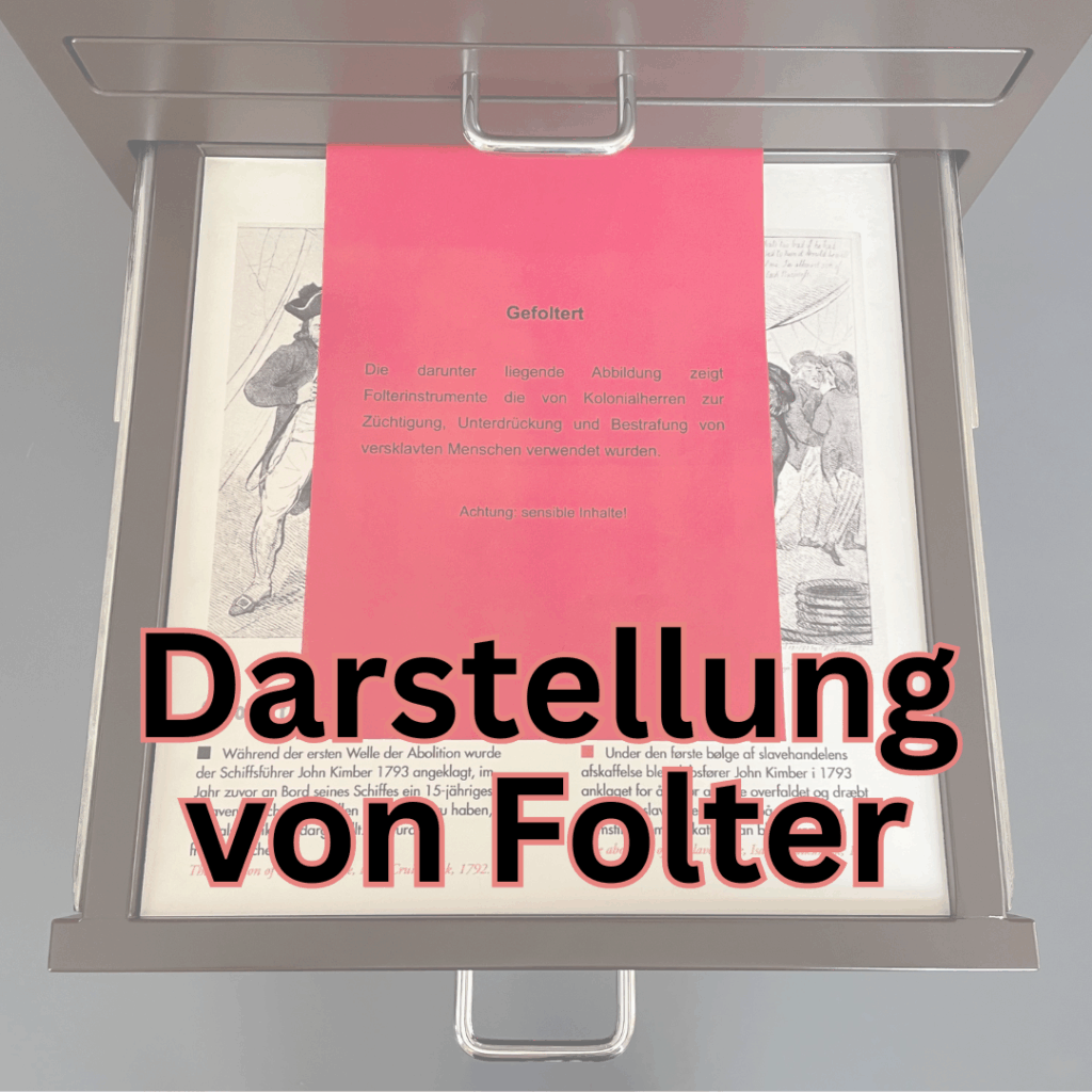 Das Vermittlungsprojekt schlägt einen sensiblen Umgang mit den Darstellungen von Folter an einem Bildungsort wie dem Schifffahrtsmuseum. Das Projekt schlägt eine zusätzliche Barriere zwischen Museumsbesuchenden und der Gewaltdarstellung, die in Schubladen des Ausstellungsmobiliars ausgestellt sind, vor. Die Tafeln, welche die Abbildungen zunächst verdecken sollen, beinhalten außerdem einleitende und kontextualisierende Informationen zur Darstellung darunter. So können die Besucherinnen und Besucher reflektierter entscheiden, ob sie die Bilder betrachten wollen und können das Dargestellte besser einordnen. Insbesondere für jüngere Menschen und für selbst von Rassismus betroffene Menschen ist ein sensibler Umgang wichtig.