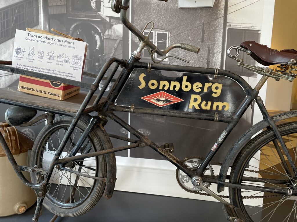 Das Lieferungsfahrrad für Rumflaschen ist ein Beispiel für die Verflechtung von lokalen Alltagspraktiken mit globalen Lieferketten, kolonialen Strukturen und Naturzerstörung. Die Ausstellung von Rumflaschen verweist nicht nur auf lokale Produktion und Konsumpraktiken, sondern lässt auch auf die globale Produktion von Rum schauen. Die Zuckerrohrproduktion auf den Plantagen der Karibikinseln ist verbunden mit der Zerstörung von Ökosystemen durch Monokulturen und Pestizide, mit der Arbeit von versklavten Menschen und den bis heute prekären Arbeitsbedingungen auf Zuckerrohrplantagen und mit ungleich verteilten Gewinnen und Risiken beim Zuckerrohranbau und der Rumproduktion.