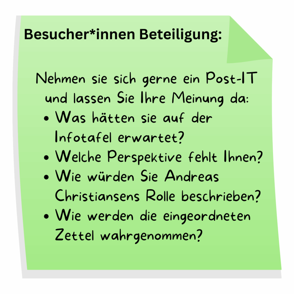 Das Vermittlungsprojekt kommentiert das Gemälde und dessen Informationstext kritisch mit ergänzenden Zitaten, die das Ausstellungsobjekt aus einer Perspektive des racial capitalism beleuchten. Racial capitalism benennt die untrennbare Verwobenheit von Kapitalismus und Rassismus. Rassistische Hierarchien, die im Kolonialismus begründet liegen, werden als ermöglichende Bedingungen für eine kapitalistische Akkumulation verstanden, die bis heute globalisiert Wirtschaftsweisen prägt. Christiansen als Kaufmann im rassistischen Kapitalismus zu betrachten, lässt seinen „Erfolg“ in ein System eingebettet verstehen, das auf der Versklavung Schwarzer Menschen beruht.